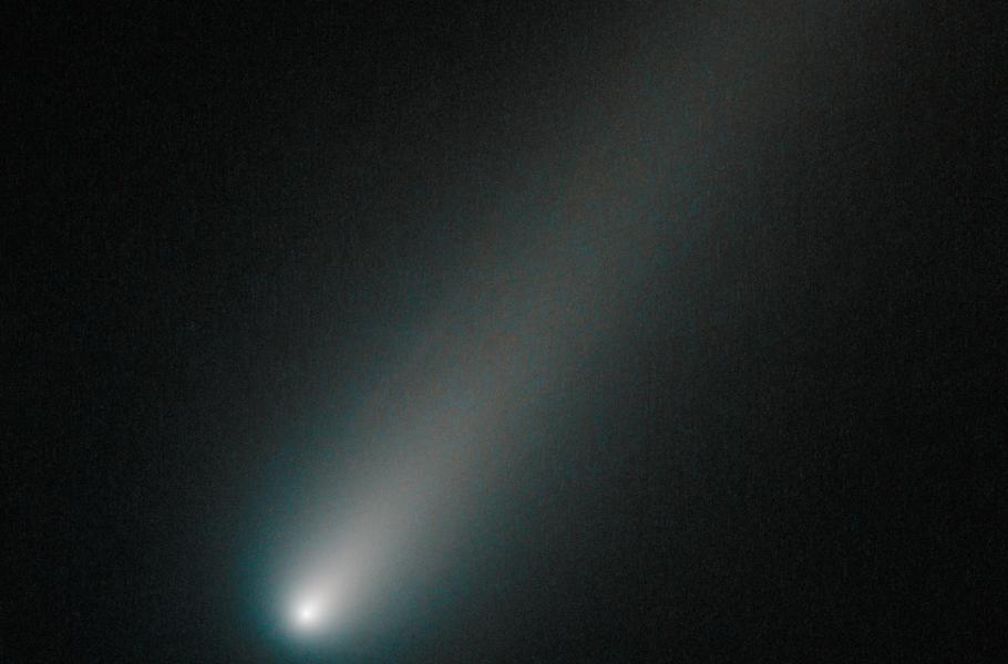 Astronomové netrpělivě čekali, jak dopadne situace s blížící se kometou C/2012 S1 (ISON): Kromě pozemních dalekohledů ji sledoval i Hubble. Nové fotografie pak napověděly, že je křehké ledové jádro vlasatice kompaktní – navzdory některým prognózám, že se může rozpadnout, jakmile jej začne zahřívat Slunce. Kometa se k naší hvězdě nejvíc přiblížila 28. listopadu 2013, kdy prolétla ve vzdálenosti 1,165 milionu kilometrů nad jejím povrchem. Na přiloženém snímku z 9. října téhož roku není kometární jádro vidět, protože je příliš malé. K Zemi se pak C/2012 S1 dostala až na vzdálenost 64 milionů kilometrů, a to 26. prosince 2013.