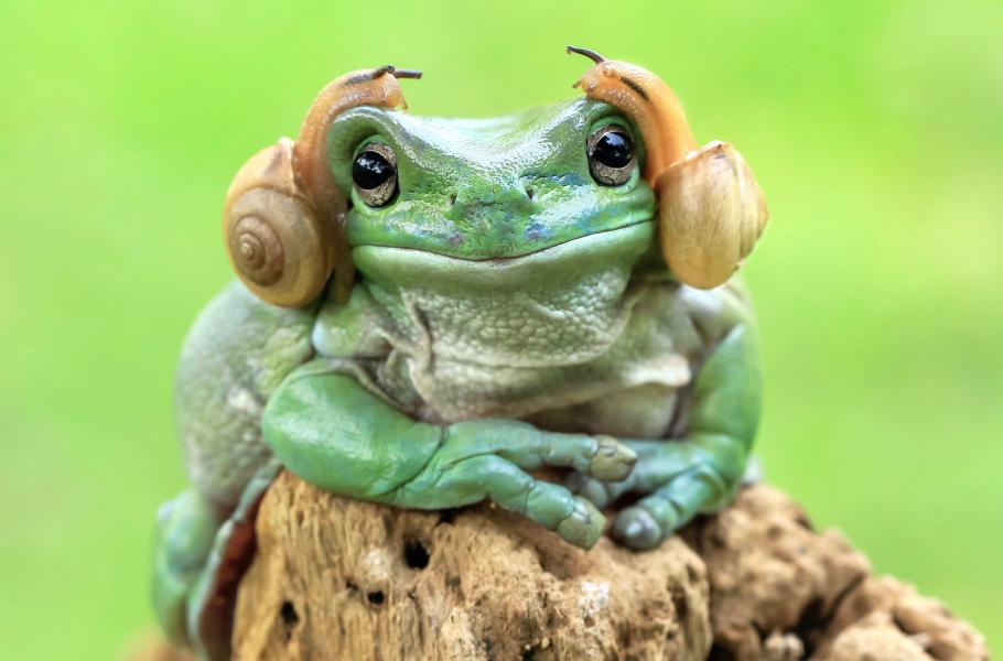 Víme, že tento výjev nejspíš ocení pouze fanoušci sci-fi série Hvězdné války, ale odpustit si ho nemůžeme. Dvojice odvážných šneků se vyšplhala na hlavu žáby a vytvořila tam obraz, který v jediném záběru kombinuje postavu princezny Leie a zločinného Jabby Hutta. Kouzelné, nemyslíte?
