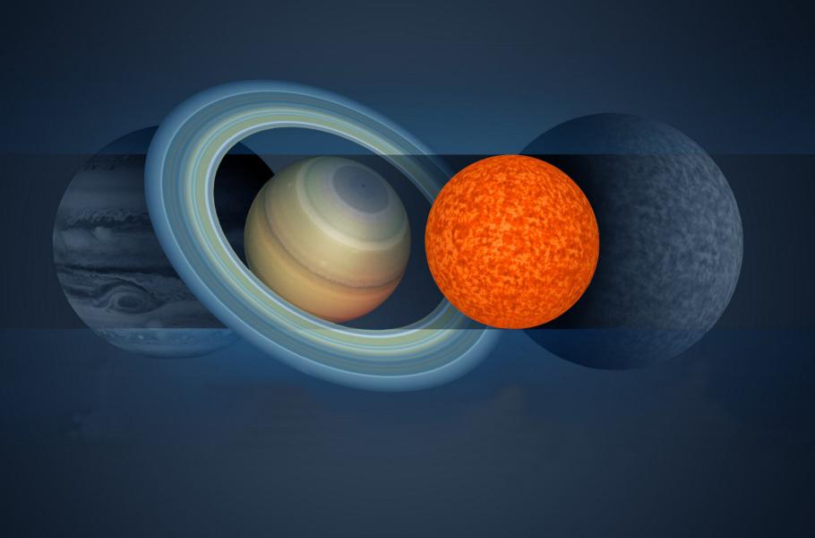 Orientační srovnání velikostí (zleva): Jupiter, Saturn, EBLM J0555-57Ab a TRAPPIST-1. (ilustrace: University of Cambridge, Amanda Smith, CC BY-SA 4.0)