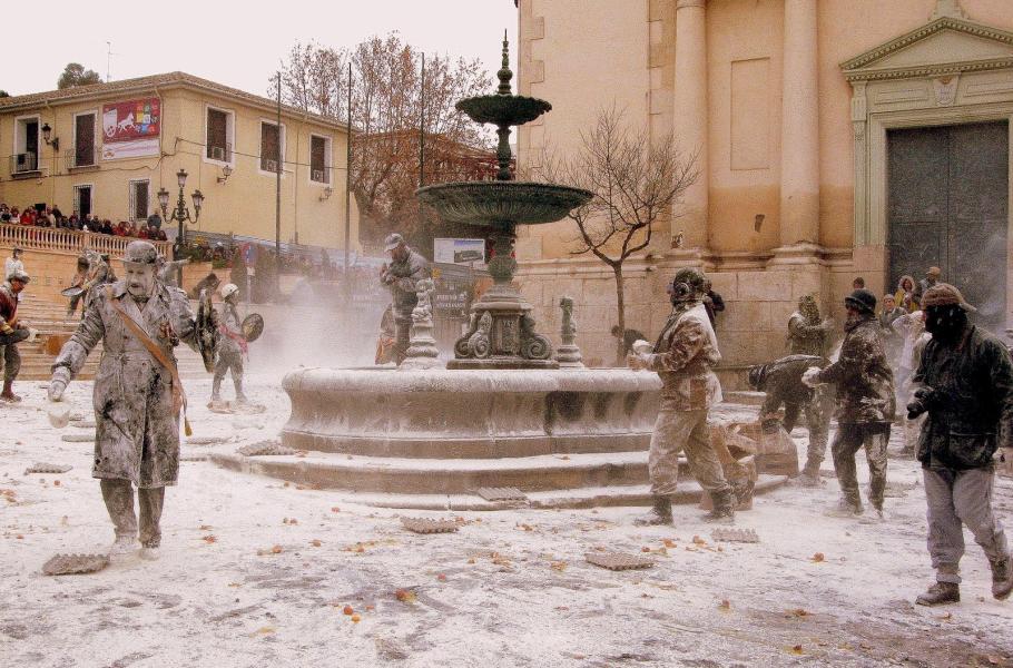 Španělské městečko Ibi je již po 200 let svědkem bizarního státního převratu. Za doprovodu hudby pouličních hudebníků zde vždy 28. prosince bojují vojáci Casats a Fadrins, vyzbrojení vejci a moukou, za nastolení nové spravedlnosti. Svátek se koná u příležitosti Dne neviňátek, nebo též masakru neviňátek a vrcholí veřejnou sbírkou a závěrečným ohňostrojem. (foto: Wikimedia Commons, Fotógrafo Ibi, CC BY-SA 4.0)