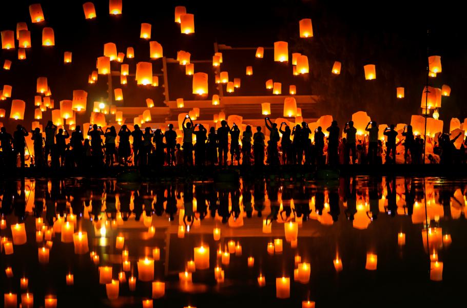 Slavnost spojenou s lampiony známe i z Česka. Na rozdíl do socialistických průvodů oslavujících Říjnovou revoluci je thajská lampionová slavnost velmi komerční záležitostí. Během listopadového úplňku po celém Thajsku k noční obloze vystoupá tisíce lampionů, na jihu země se zase světla rozzáří na vodní hladině. Oba svátky Yi Peng (na severu) i Loi Krathong (na jihu) mají především podpořit turismus a přilákat do země zážitků chtivé zákazníky. Na akci je se platí vstupné až 100 dolarů a o nejlepší místa je vždy velký zájem. (foto: Shutterstock)