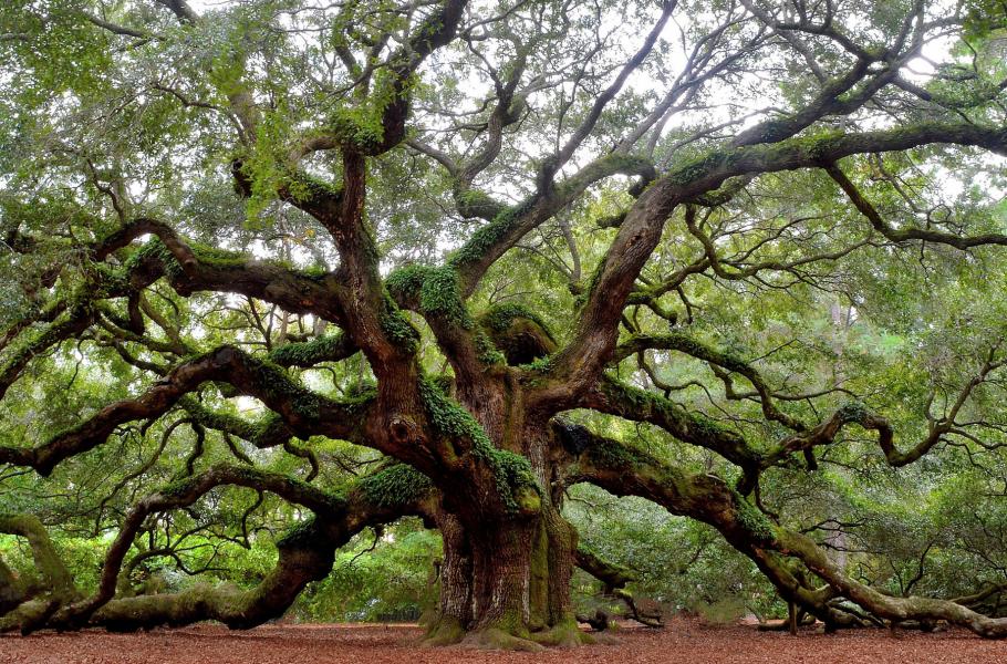 Dvacet metrů vysoký dub Angel vrhá stín o ploše 1 600 m². Jméno získal díky bývalým majitelům pozemku, rodině Angelových, a jeho stáří se odhaduje na 400–500 let. Opřádá jej spousta pověstí a legend: Mezi jeho větvemi například údajně tančí duchové otroků, kteří připomínají anděly.