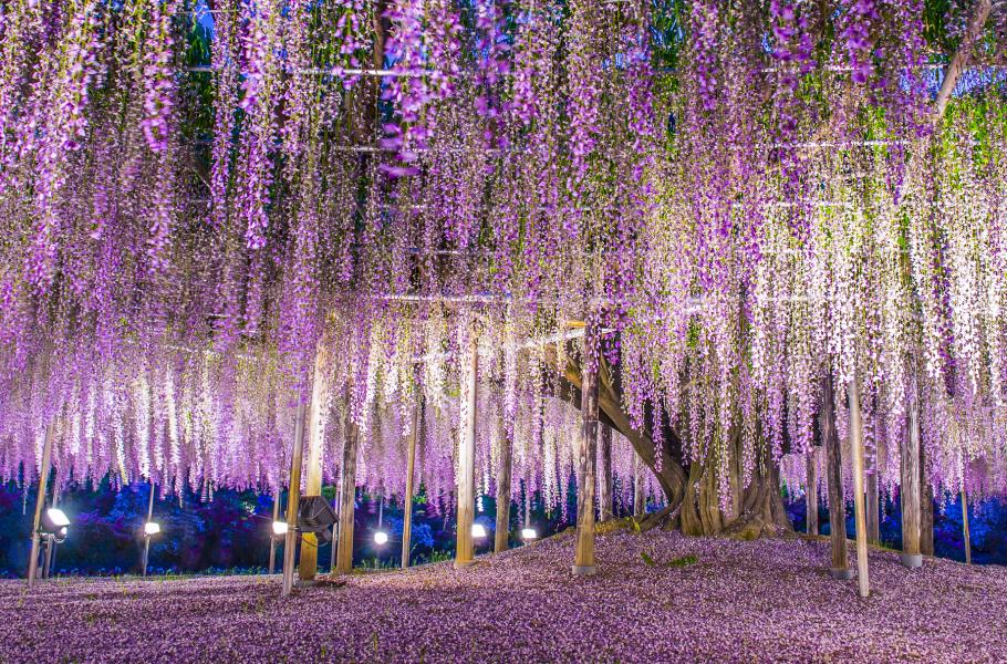 Koruna víc než 150leté vistárie, která se stala dominantou japonského parku Ashikaga Flower Park, má rozlohu přes 1 990 m². Strom kvete během dubna a jeho chlouba se v tomto měsíci mění v pohádkový fialový deštník, jenž kryje relaxační zónu i romantické stezky.