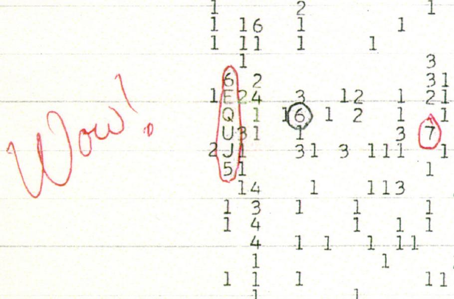 Když 15. srpna 1977 analyzoval Dr. Jerry R. Ehman záznam z teleskopu Big Ear – oněměl údivem. Své překvapení dokumentoval ručně psanou poznámkou, která dala signálu i jméno – zrodil se Signál Wow!