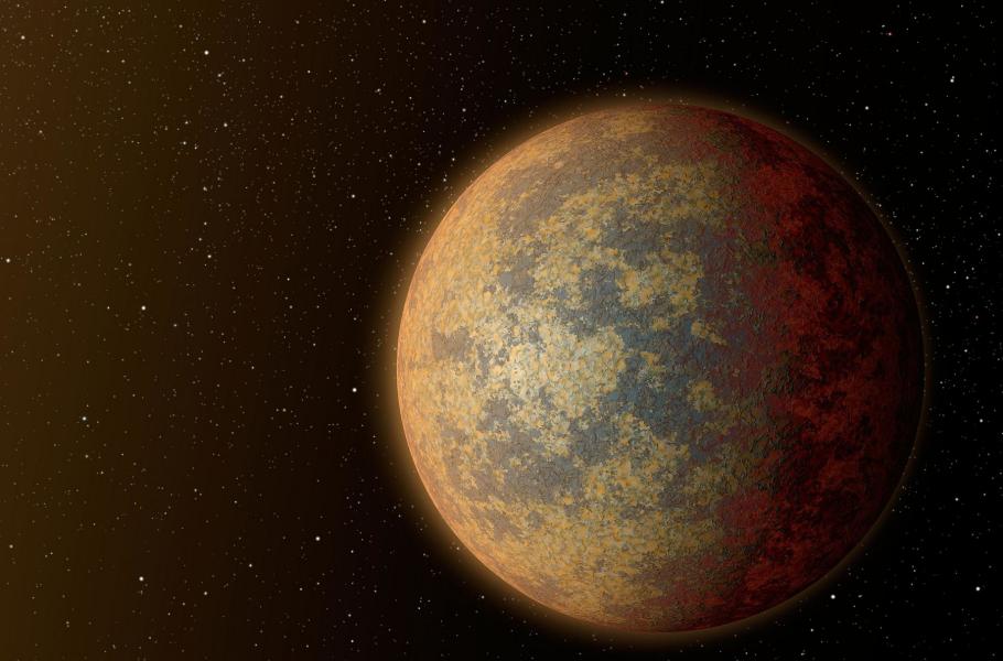 Vizualizace planety HD 219134b, nejbližší potvrzené kamenné exoplanety, která byla dosud nalezena mimo naši Sluneční soustavu. (zdroj: NASA/JPL-Caltech, CC BY-SA 4.0)