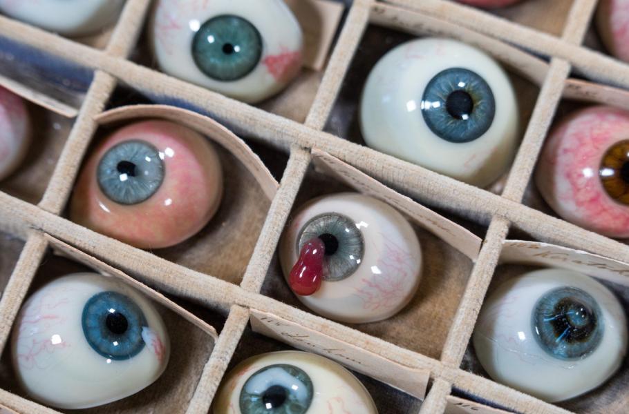 Na první pohled možná lehce morbidní sbírkou se může pochlubit oddělení patologie v německém Rostocku. Zdejší depozitář čítá 132 různých očních náhrad vyrobených z foukaného skla mezi léty 1860 až 1880. V Německu, podobně jako například v Itálii a zemích východní Evropy, se protézy vyrábějí převážně ze skla. Teprve v posledních letech je doplňují náhrady z umělé pryskyřice, které se začaly praktikovat ve Spojených státech v 50. letech minulého století.