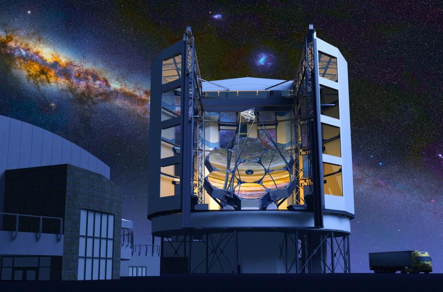 Vyroste v oblasti observatoře Las Campanas v Chile, v nadmořské výšce 2 516 m. Lokalita astronomům nabízí přes 300 nocí za rok s vynikajícími pozorovacími podmínkami. Velká zrcadla – největší monolitické objektivy o hmotnosti zhruba 17 tun – vyrábí University of Arizona a jejich povrch bude vybroušen s přesností 25 nm. Astronomové očekávají, že jim dalekohled umožní zachytit světlo přicházející z nejvzdálenějších oblastí vesmíru. Rovněž se domnívají, že jeho pomocí dokážou pozorovat planety kroužící kolem jiných hvězd a pátrat po podmínkách vhodných pro život. (ilustrace: Wikimedia Commons, GMTO Corporation, CC BY-SA 3.0)