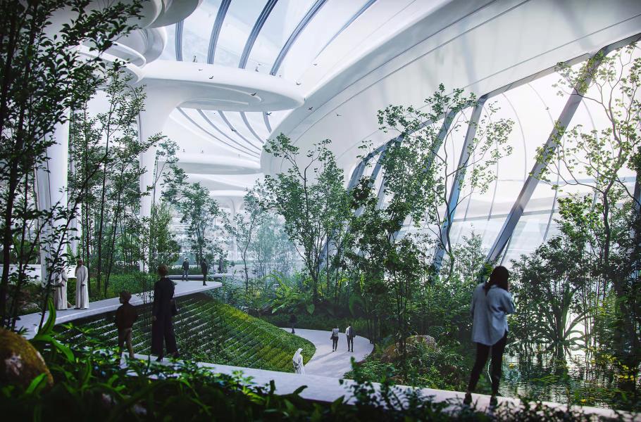 Pětipatrová struktura připomínající obří prstenec má nabídnout kancelářské, obchodní, kulturní i rezidenční prostory, uspořádané ve dvou samostatných sekcí. Mezi oběma prstenci má vzniknout Skypark – vertikální park a „zelené plíce“ celého komplexu. Celou strukturu má ve výšce 550 metrů nad zemí podpírat pětice masivních podpěr a vzniknout tak má „hyperefektivní městské centrum, koexistující s přírodou.“