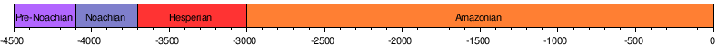 Badatelé se domnívají, že horní okraj šestikilometrového srázu, který obklopuje vulkán Olympus Mons, zřejmě vznikl počátkem období hesperianu, kdy ho vytvořila láva vtékající do marťanského oceánu. Podobné geologické rysy jsou patrné i na svazích dalšího štítového vulkánu Alba Mons, který se nachází 1 800 kilometrů severozápadně od Olympus Mons.