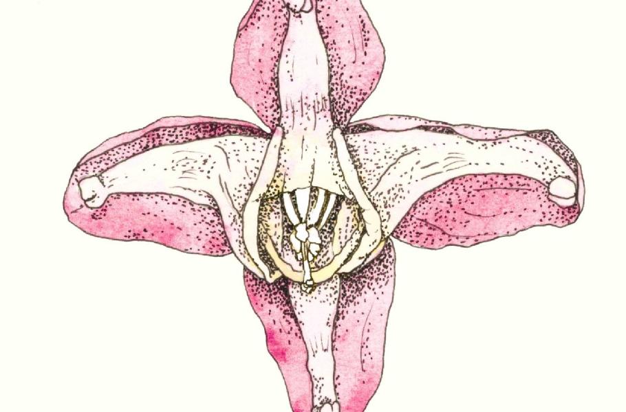 Při pohledu zblízka zjistíte, že mají velice zajímavou stavbu. Kališní lístky jsou ve dvou řadách po čtyřech. Lístky první řady jsou drobné a často brzy opadají. Lístky druhé řady jsou velké, barevné a připomínají korunní lístky. Často bývají protažené v ostruhu, která je někdy nápadně dlouhá a také nesou medníky. Jednotlivé kališní a korunní lístky můžou mít rozdílnou barvu, ostruha může být také jinak zbarvená. To vytváří neobyčejnou barevnou pestrost květů.