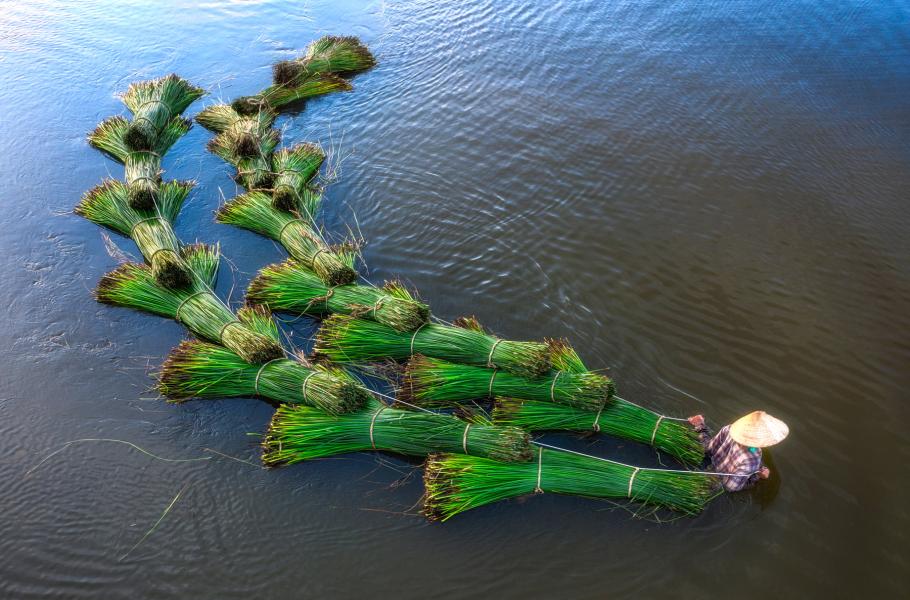Dvě až tři hodiny denně tráví obyvatelé vietnamského městečka Tuy Hòa v metr hluboké vodě: Sbírají rýžovou slámu zbylou po sklizni, jež slouží coby krmivo hospodářských zvířat či hnojivo, ale v posledních letech také jako ekologická náhrada plastových brček. Mnoho zemědělců však odpadní zeleň jednoduše pálí, což dál zhoršuje kvalitu ovzduší i zdraví populace. Úřady se proto snaží najít pro slámu jiné využití. (foto: Profimedia)