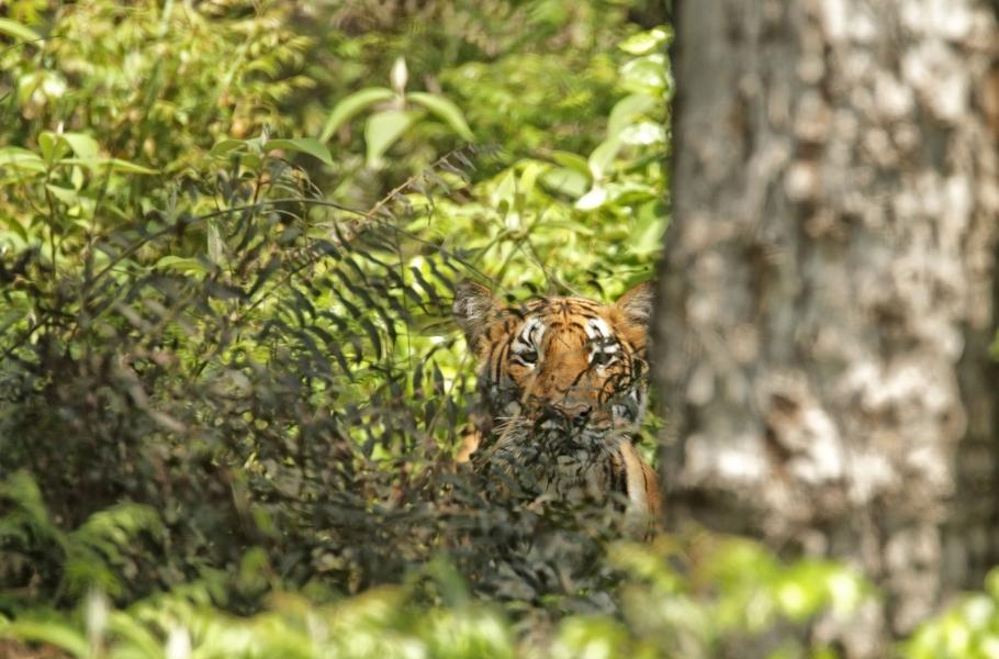 Tygr je velice opatrné a plaché zvíře, a když nechce, není prakticky možné ho zahlédnout. Výborným detektorem tygří přítomnosti jsou opice. Ty při spatření tygra vydávají typické, snadno poznatelné skřeky. Žádné jiné zvíře je nedokáže tolik rozrušit jako vrcholný predátor.