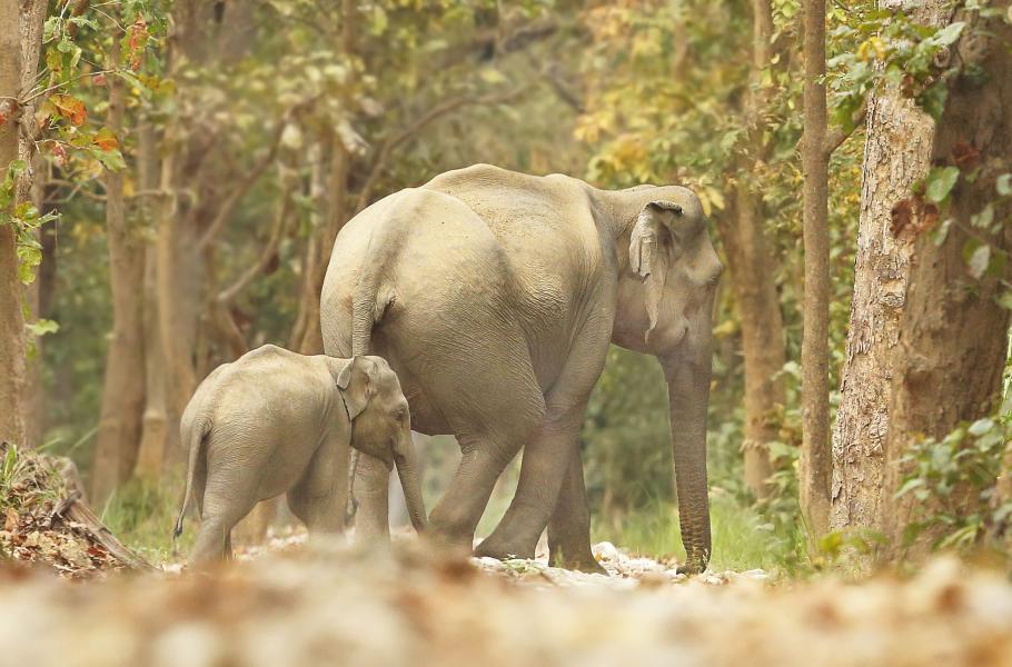 Na rozdíl od tygra bengálského se slon indický (Elephas maximus) návštěvníkům nijak neukrývá a je možné zažít jej na velmi malou vzdálenost. To se nám například poštěstilo, když jsme si na jednoho statného samce počkali u brodu, abychom si jej mohli zdokumentovat ve vodě. Slon se ovšem přebrodil až k nám a míjet tento kolos ve vzdálenosti pouhých pár metrů byl určitě jeden z nejintenzivnějších zážitků celého pobytu v Bardiyi.