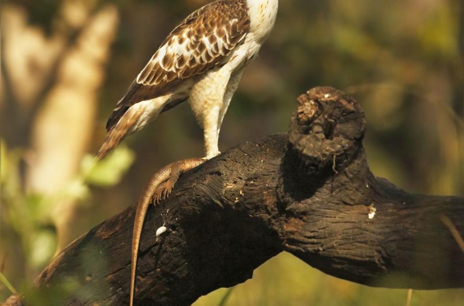 Pestrý je tady samozřejmě i výskyt hmyzu, vždyť například při čekání u řeky kolem nás létalo až pět druhů vážek. Své zastoupení mají v Bardiyi také obojživelníci a plazi. Kobru královskou (Ophiophagus hannah) jsme dlouho neúspěšně hledali v jejím úkrytu pod suchým listím a hodí se podotknout, že náš průvodce byl při pátrání po prudce jedovatém hadovi obut jen do obligátních gumových pantoflí. Setkání s přibližně pětimetrovou krajtou tygrovitou (Python molurus) už bylo kontaktnější a pohyb kolem ní v hustém křoví nepostrádal i jistou dávku dramatičnosti.