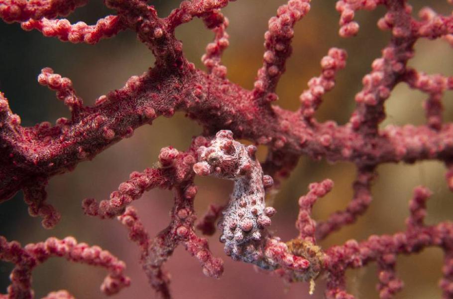 Koníček zakrslý (Hippocampus bargibanti) u gorgonie druhu Muricella plectana. (foto: Shutterstock)