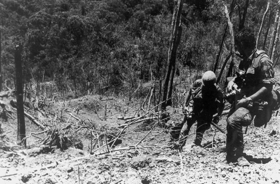 Američtí vojáci si po boji prohlíží jeden ze svahů takzvaného Hamburger Hill. (foto: Wikimedia Commons, USAMHI, CC0)