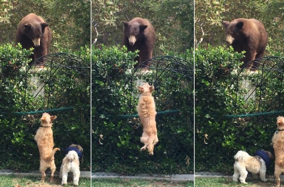 Když se k pozemku Christine Downs Bradburyové z Kalifornie přišoural obrovský medvěd, vypadalo to na hodně nerovný souboj. Zahnat medvědího chlupáče se totiž pokoušela dvojice statečných psíků, vážících sotva pár kilogramů. Vytrvalý štěkot a odhodlání Bentleye a Tuckera, jak se oba stateční psi jmenují, ale slavilo úspěch. Po několika minutách medvěd další postup vzdal a odkráčel pryč.
