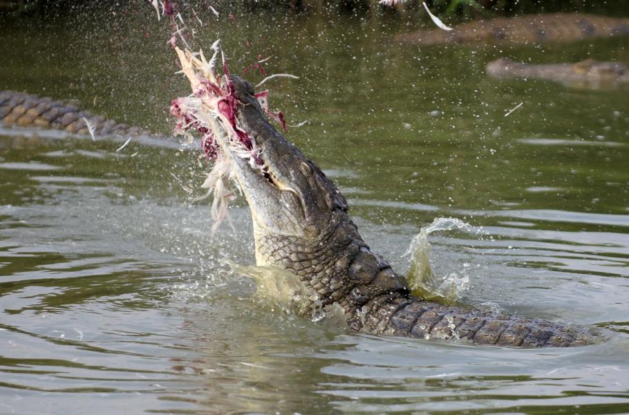 Krokodýl svoji kořist sevře brutální silou, která v současné zvířecí říši nemá prakticky konkurenci. Jedině velký bílý žralok má možná silnější čelisti (podle výpočtů kolem 280 kg/cm²), ale u něj nebyla tato hodnota nikdy experimentálně ověřena. (foto: Shutterstock)