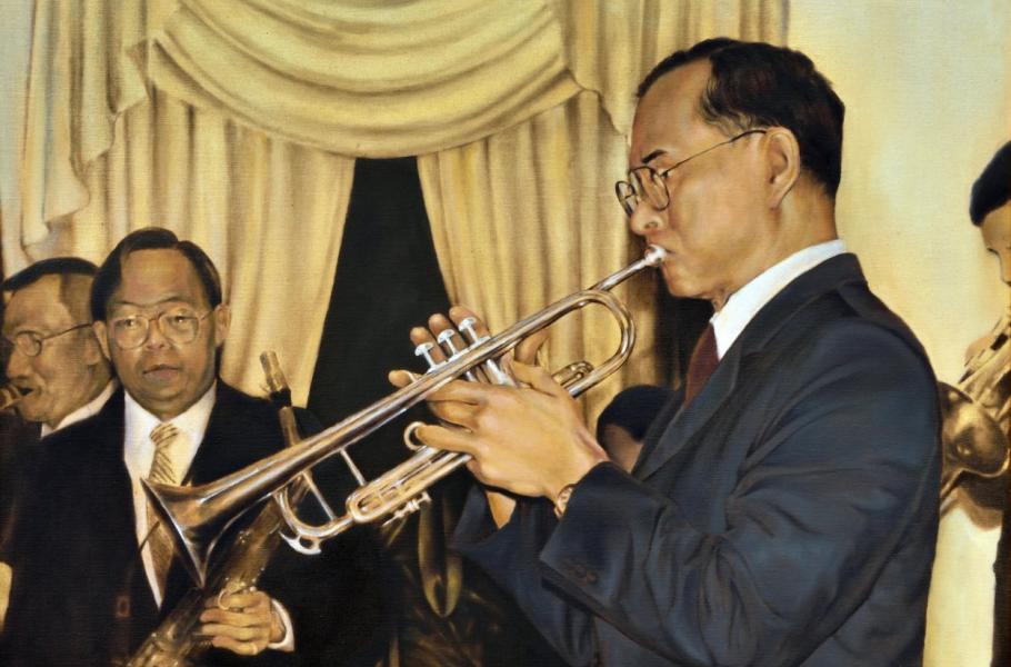 Ráma IX. jako jazzový nadšenec a hudební skladatel zkomponoval thajskou národní hymnu.