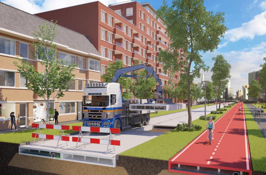 Plasty lze využít mimo jiné coby alternativu pro asfalt. Jejich nesporná výhoda totiž tkví v tepelné odolnosti, sahající od −40 °C do 80 °C. Vozovku z recyklátu navíc tolik neohrožují povětrnostní podmínky, a tudíž tak snadno nepodléhá erozi – oproti běžné asfaltové silnici má mít až trojnásobnou životnost. I pokládání recyklovaných cest je rychlejší, protože vznikají z předem připravených dílů, které se spojují k sobě. Komunikace se tak nebuduje měsíce, nýbrž pouhé týdny. (foto: PlasticRoad BV)