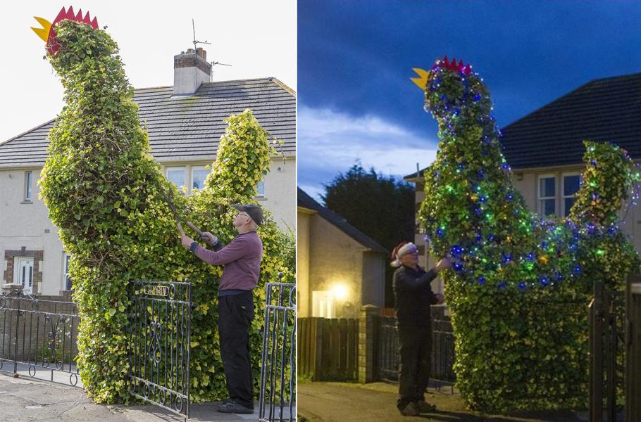 Třiasedmdesátiletý penzista Jim Hughes se rozhodl, že překvapí svou manželku. Zatímco žena byla na dovolené, vzal si zahradnické nůžky a na předzahrádce svého domu upravil strom obrostlý břečťanem do podoby obřího kohouta. Jimovo dílko se okamžitě stalo místní atrakcí. Nyní kohout Jock, jak Jim svůj výtvor pojmenoval, láká oči zvědavců opět – z obřího kohouta se stal velmi neobvyklý, svítící a blikající vánoční stromeček.