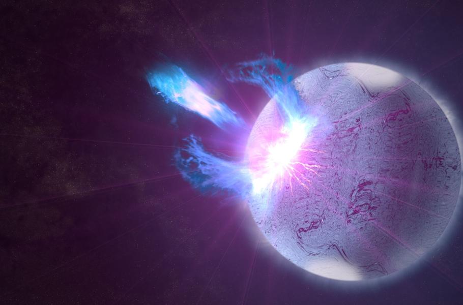 Ilustrace magnetaru – extrémně magnetického druhu neutronové hvězdy. (ilustrace: NASA's Goddard Space Flight Center, S. Wiessinger, CC BY-SA 4.0)