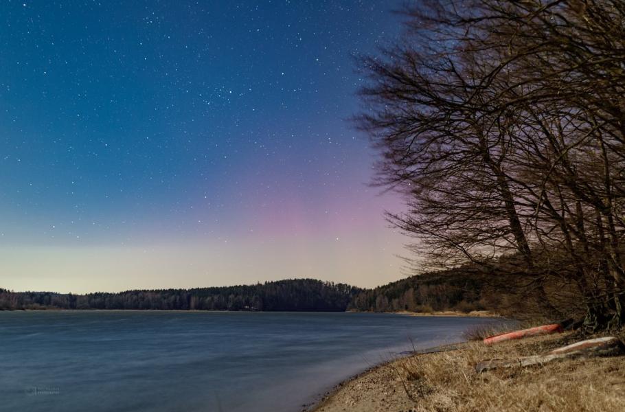 V České republice byla v noci na pondělí vidět polární záře. Fotografie vzácného úkazu pořídil půl hodiny po půlnoci astronom Petr Horálek na břehu sečské přehrady na Chrudimsku