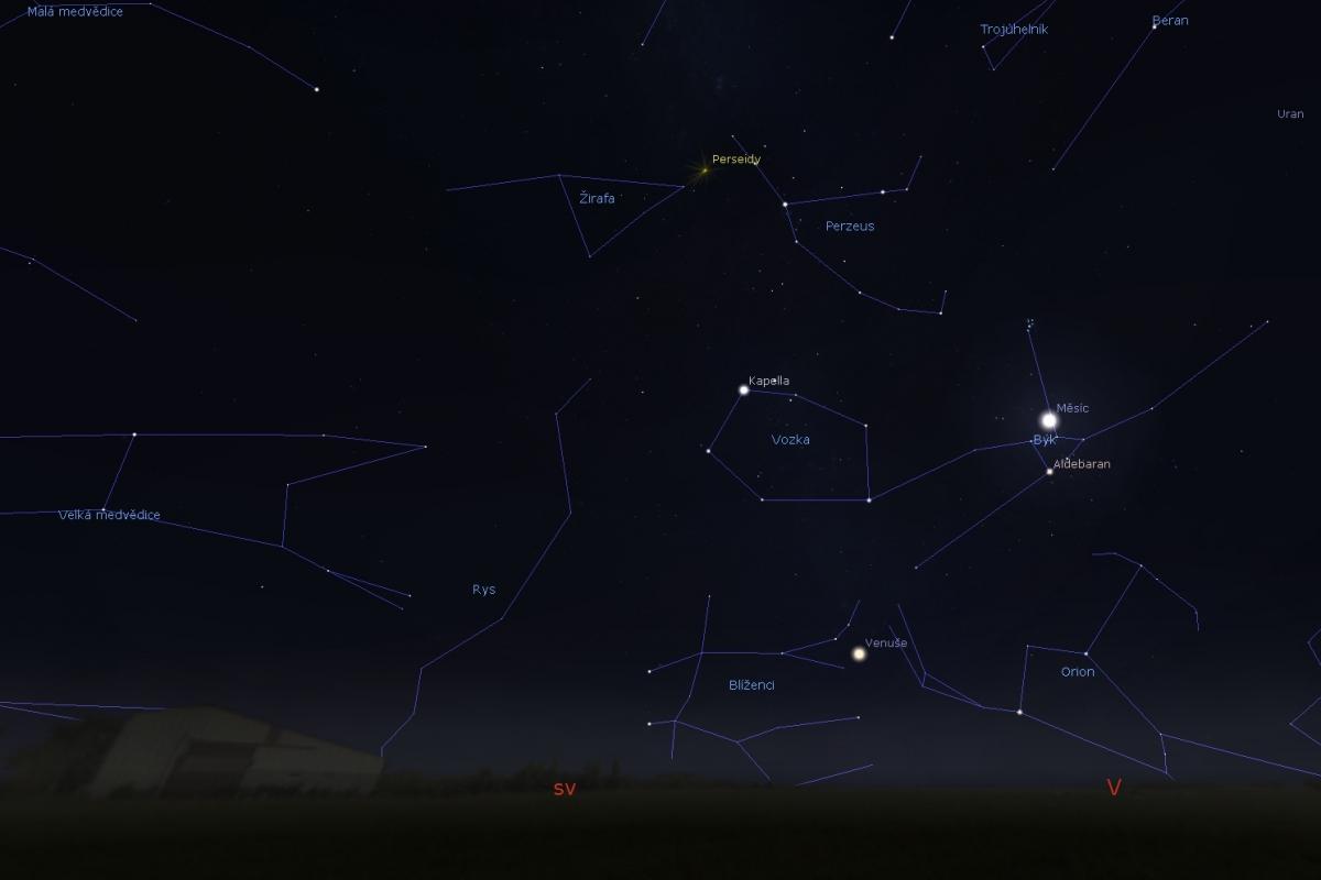 Přibližně kolem půlnoci představení doplní vycházející planeta Mars, a pokud vydržíte ještě chvíli, kolem jedné hodiny ranní se nad východní obzor vyhoupne i Měsíc a o dvě hodiny později i zářivá Venuše.