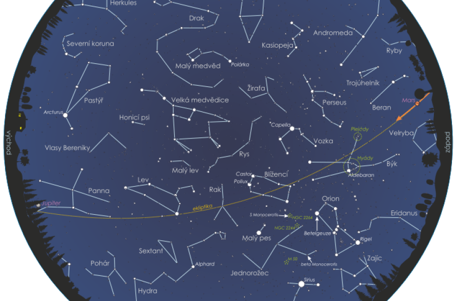 Vraťme se však zpět na večerní oblohu, a tentokrát třeba do míst, která na první pohled vypadají poněkud prázdně – tedy alespoň ve srovnání s okolními souhvězdími Blíženců, Oriona či Velkého psa. Vydali jsme se do nenápadného souhvězdí Jednorožce, jehož nejjasnější stálice mají hvězdnou velikost pouze kolem 4 mag.