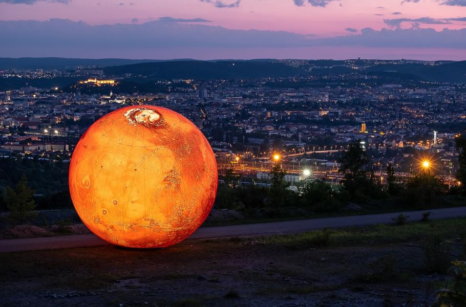 Po fascinujícím modelu Měsíce, či planety Země, přichází Hvězdárna a planetárium Brno opět se skvělým nápadem v podobě Marsmelounu neboli modelu planety Mars. Na Kraví hoře bude model k vidění od pondělí 12. do neděle 18. července vždy od 14.00 do 24.00 hodin. (foto: Hvězdárna a planetárium Brno)