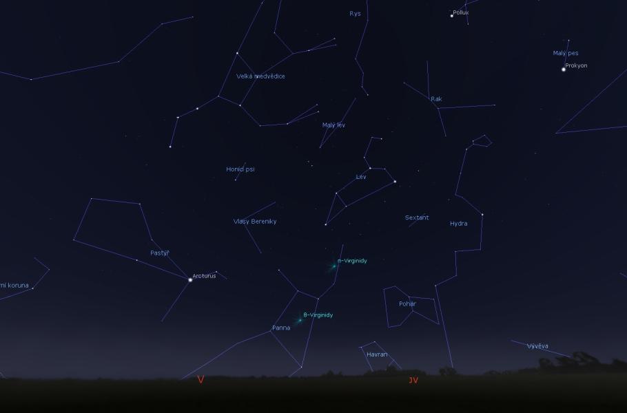- 25. dubna – Měsíc poblíž Spiky z Panny na noční obloze