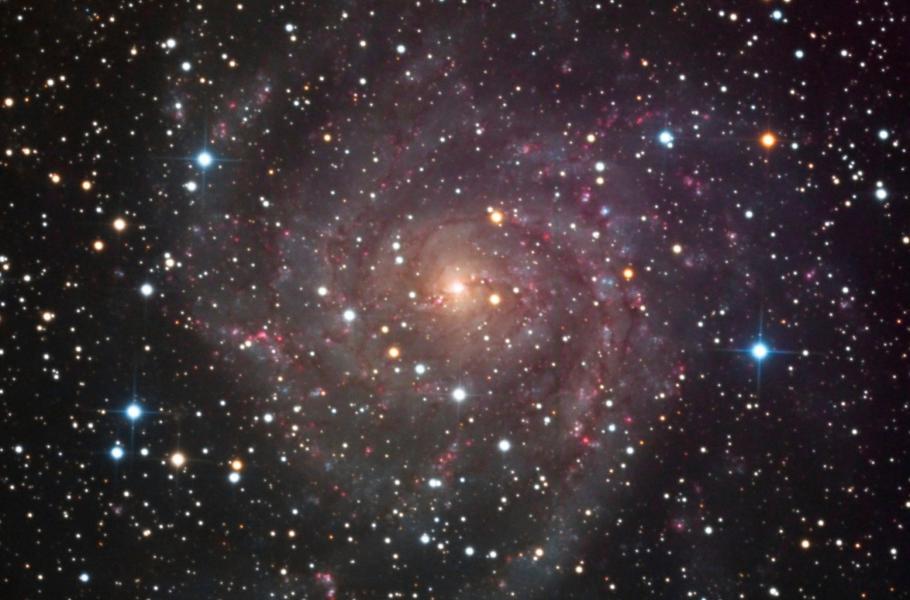 Galaxie IC 342 se při pohledu ze Země promítá do roviny disku našeho vlastního hvězdného ostrova, což její pozorování ztěžuje. (foto: Wikimedia Commons, Sean Curry, CC BY-SA 3.0)