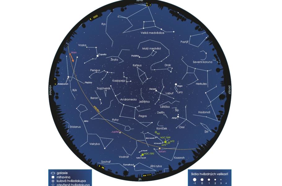 Noční obloha v listopadu: Pohledné hvězdokupy a mlhoviny v náručí Vodnáře