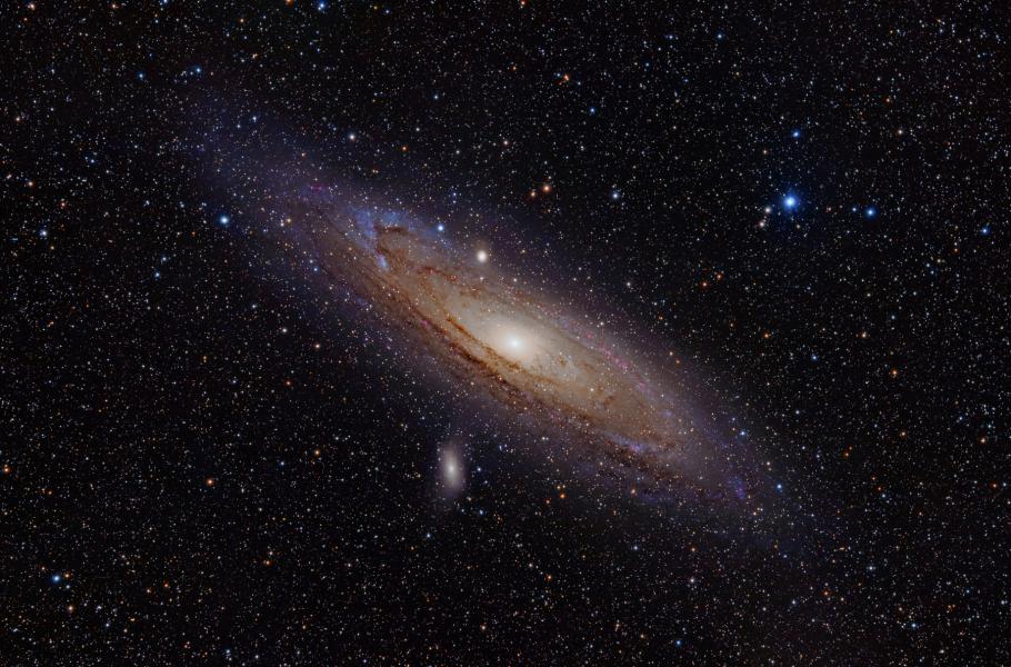 Známá spirální galaxie M31 neboli NGC 224 v souhvězdí Andromedy. Zhruba s 3,4 mag představuje nejjasnější objekt svého druhu na pozemské obloze. (foto: Wikimedia Commons, Adam Evans, CC BY 2.0)