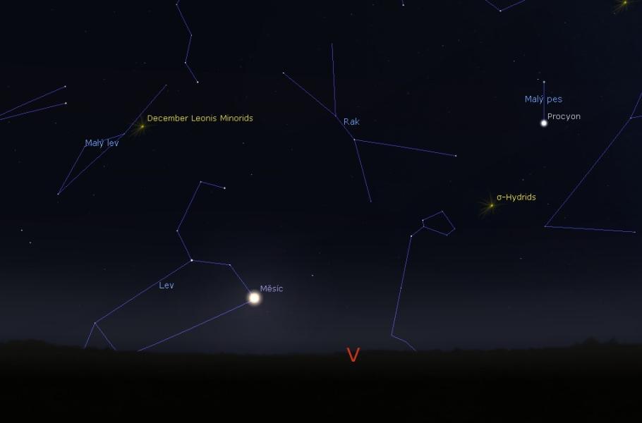 Jako první se nad jihovýchodem objeví naoranžovělý Mars, po němž následuje i žlutobílý Jupiter. Na sklonku prosince se pak za rozbřesku, velmi nízko nad jihovýchodním horizontem, dočkáme i nevýrazného Merkuru.