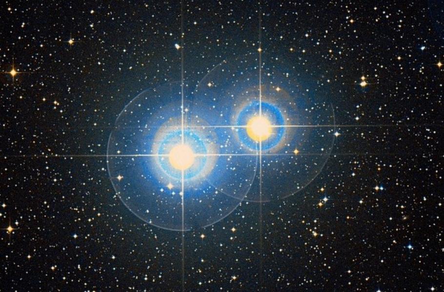 Zkuste se na Alfu zadívat co nejpozorněji: Máte-li dobrý zrak, s velkou pravděpodobností uvidíte hvězdy dvě. A pokud ne, stačí vzít do ruky malý dalekohled. Alfa je zkrátka pohledná dvojhvězda – tedy alespoň zdánlivě. Ve skutečnosti se obě složky s výrazným nažloutlým odstínem do jednoho místa na nebi pouze promítají a ve vesmírném prostoru je dělí asi 500 světelných let. Jedná se tedy o tzv. optickou dvojhvězdu.