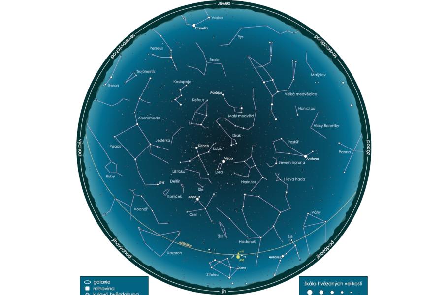 Noční obloha v srpnu: Nebe plné Perseid a říše rozeklaných mlhovin