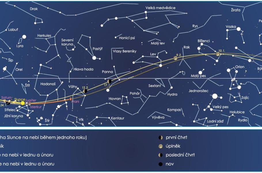 - Neptun – na počátku února viditelný večer nad jihozápadem až západem