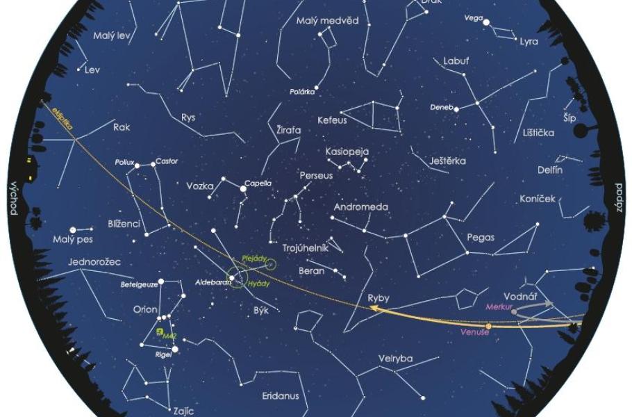 - Venuše – viditelná večer vysoko nad jihozápadem