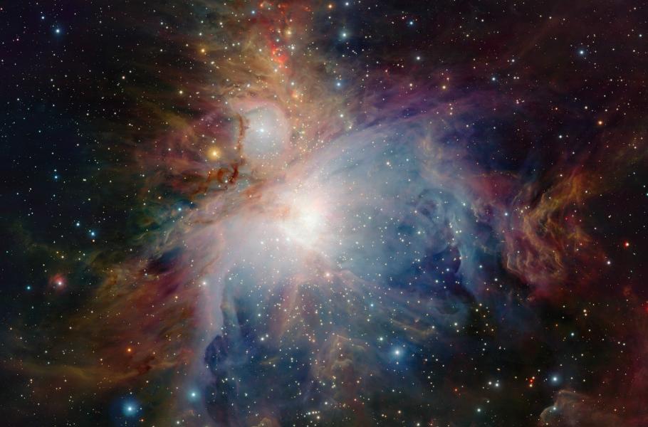 Širokoúhlý pohled na Mlhovinu v Orionu jak ji zachytil infradalekohled VISTA observatoře ESO.