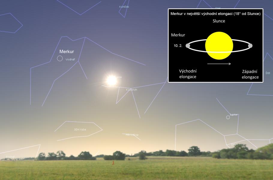 - 10. února – Merkur v největší východní elongaci (18° od Slunce)