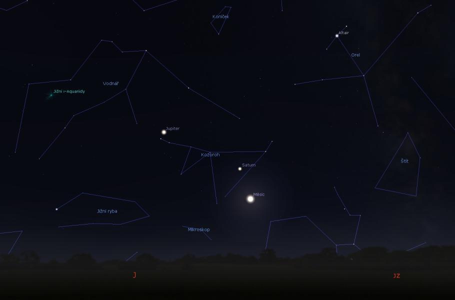 - 16. až 18. září – seskupení Měsíce, Saturnu a Jupitera v první polovině noci; 16. 9. Měsíc cca 7° od Saturnu, 17. 9. vpůli cesty mezi Jupiterem a Saturnem, 18. 9. cca 7° od Jupitera