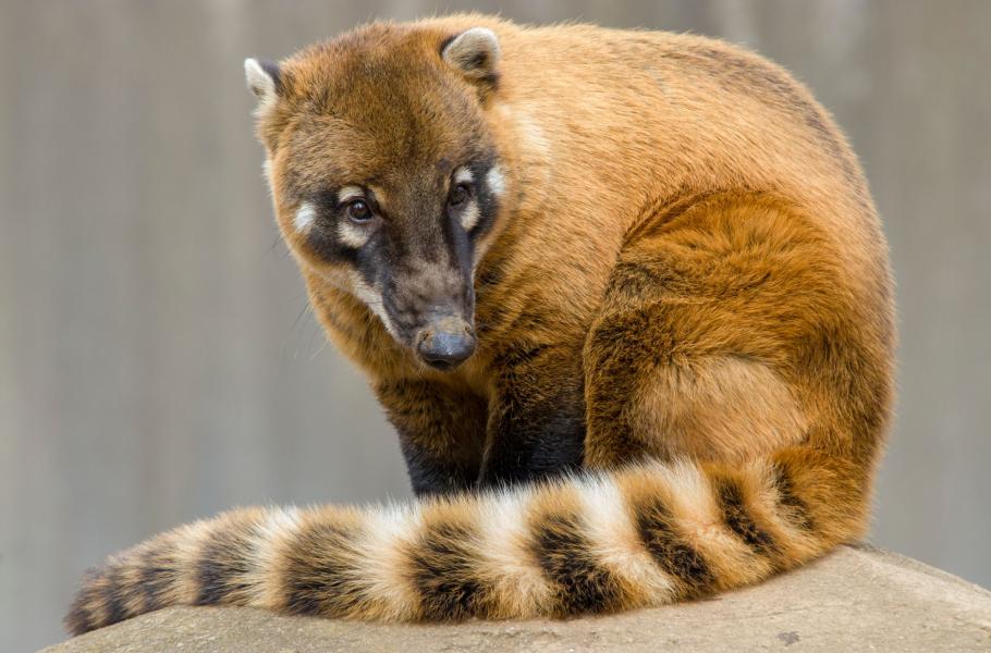 V jihoamerické domovině se nosálům říká coati nebo coatimundi. Názvy mají původ v jazyce indiánů Tupi-Guarani, kde „coati“ znamená „pas“ nebo „břicho“ a „tim“ označuje „čenich“. Původní obyvatelé Jižní Ameriky tak zřejmě poukazovali na charakteristickou polohu těla nosálů při spánku, kdy si zvířata strkají dlouhý čenich pod břicho. V Mexiku nosálovi říkají tejón nebo moncún, v Panamě jej označují jako gatosolos. Latinský název Nasua je rovněž odvozen od slova „nos“. (foto: Shutterstock)