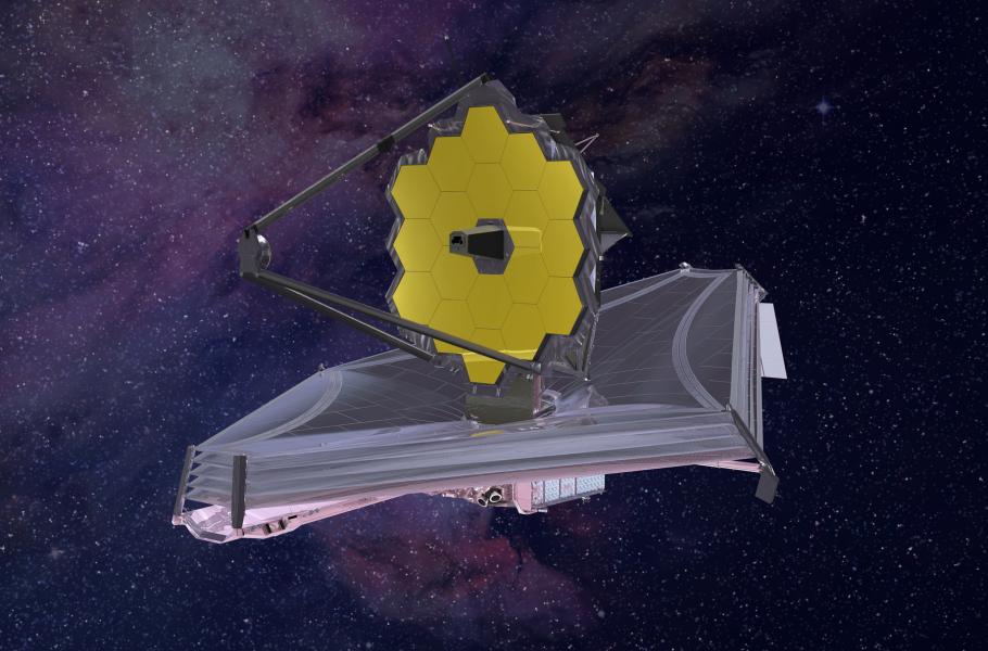 Vesmírný dalekohled Jamese Webba opět posouvá hranice pozorovatelného vesmíru. (ilustrace: NASA, ESA, CSA, Northrop Grumman, CC BY-SA 4.0)