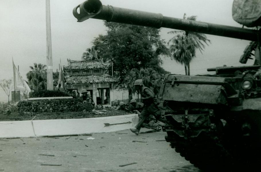 Spojené státy se dlouho zdráhaly nasadit v historickém centru artilerii či letectvo, a tak nastoupila pěchota s úkolem čistit dům po domu. Tankisté museli před každým výstřelem žádat o povolení. A zatímco se boje vlekly, záběry šarvátek poškozujících cenné budovy pobuřovaly americkou veřejnost. Jihovietnamské 1. divizi podpořené trojicí praporů USMC nakonec trvalo 25 dní, než město nepřátel zbavila.