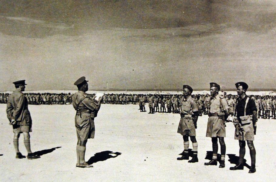 Velitel britských sil v severní Africe Claude Auchinleck vyznamenává novozélandské vojáky za statečnost projevenou v boji o Krétu.