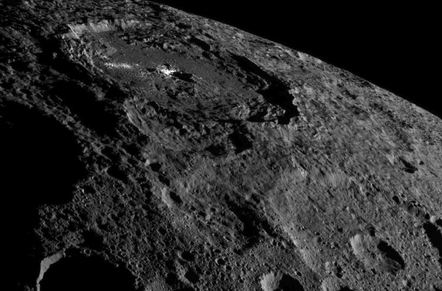 Devadesát kilometrů široký a čtyři kilometry hluboký kráter Occator, objevený na planetce Ceres, si pohrává s představivostí vědců již hezkých pár měsíců. Kolem záhadných světlých skvrn, zaznamenaných v tomto místě, vzniklo již mnoho nejrůznějších studií a teorií, které se pokoušely vysvětlit jejich původ – od prvních, které neobvykle světlá místa připisovaly odrazivosti ledu, přes pozorování provedená pomocí spektrografu HARPS, která zde odhalila těkavé sloučeniny, až po prozatím poslední studii, která skvrny připisuje vysoké koncentraci látek na bázi prací sody.