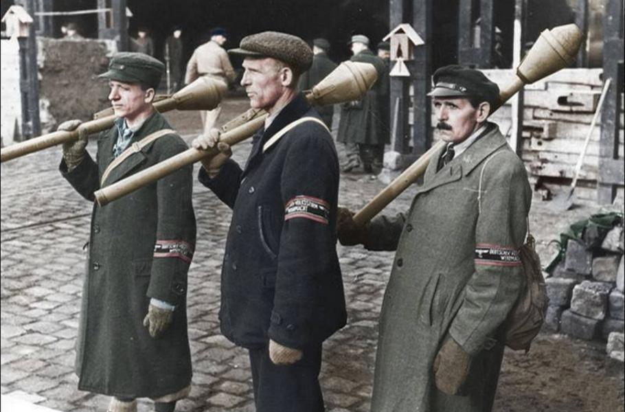 Příslušníci Volkssturmu s Panzerfausty v Berlíně, březen 1945. (foto: Wikimedia Commons, Bundesarchiv, CC BY-SA 4.0)