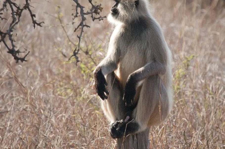 Hned v národním parku Sariska v severovýchodním Rádžasthánu jsme se přesvědčili, že Indie není Afrika. Kromě několika vypelichaných vycpanin v místním hotelu jsme nezahlédli ani tygří chlup. Jiné to bylo v Ranthambhore. Pohybovali jsme se v džípu s průvodcem ve vzdálenějším sektoru národního parku. Průvodci mají samozřejmě přehled, kolik tygrů je v rezervaci, kde se převážně pohybují a znají jejich zvyky. Právě tyto znalosti v kombinaci s nasloucháním zvuků pralesa jim občas pomohou objevit místo, kde se tygr právě vyskytuje. Hlavními hlasateli přítomnosti šelmy jsou jeleni sambaři (Rusa unicolor) a opice hulmani posvátní (Semnopithecus entellus).