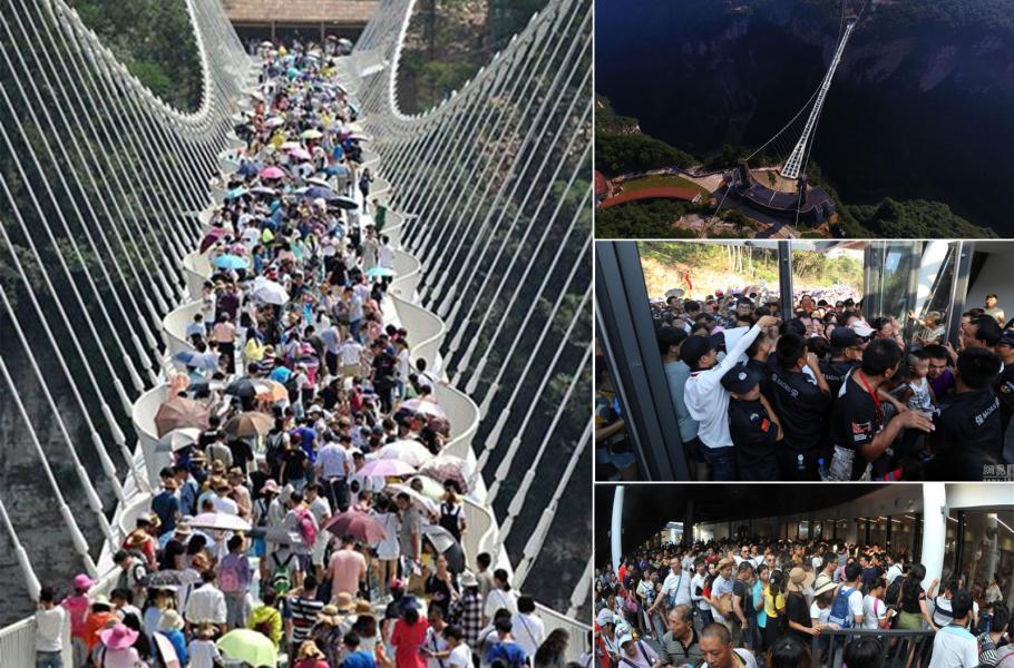 Skleněný most, který byl otevřen v loňském roce, se těší obrovskému zájmu turistů. Kvůli návalu zvědavců musel být dokonce krátce po svém uvedení do provozu na čas uzavřený. Původní plány počítaly s denním provozem okolo 8 tisíc návštěvníků, zájem byl ale desetinásobný.